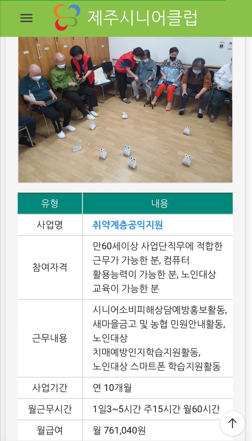 • 홈페이지: 제주시니어클럽 공식 홈페이지